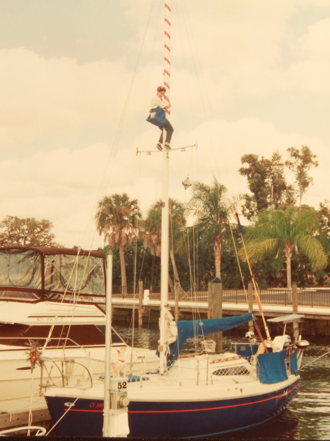 Back in 1991, Russel and I brought our little sailboat through the Panama Canal and then sailed north past Honduras and Jamaica and Cuba, up into U.S. waters. After an exhausting passage across the Gulf of Mexico (and yes it is always going to be the Gulf of MEXICO to me and to all the historians and geographers) during a long wet storm (they called it a low pressure system but the pressure was high on Watchfire), we ended up sailing under the massive Tampa Bay Bridge after midnight. After a few days’ search of marinas, we got a slip in Bradenton, near beautiful Sarasota, Florida.